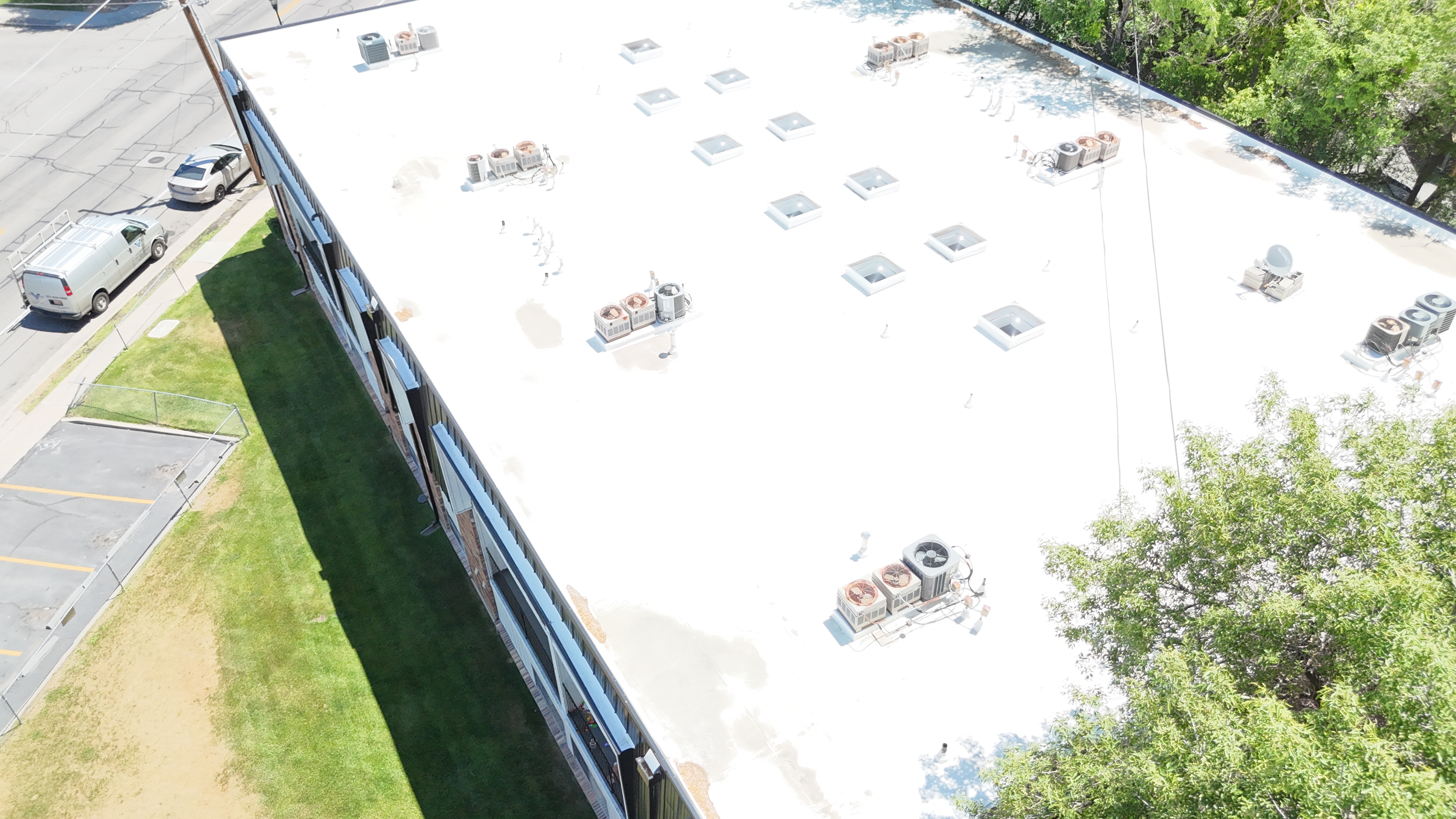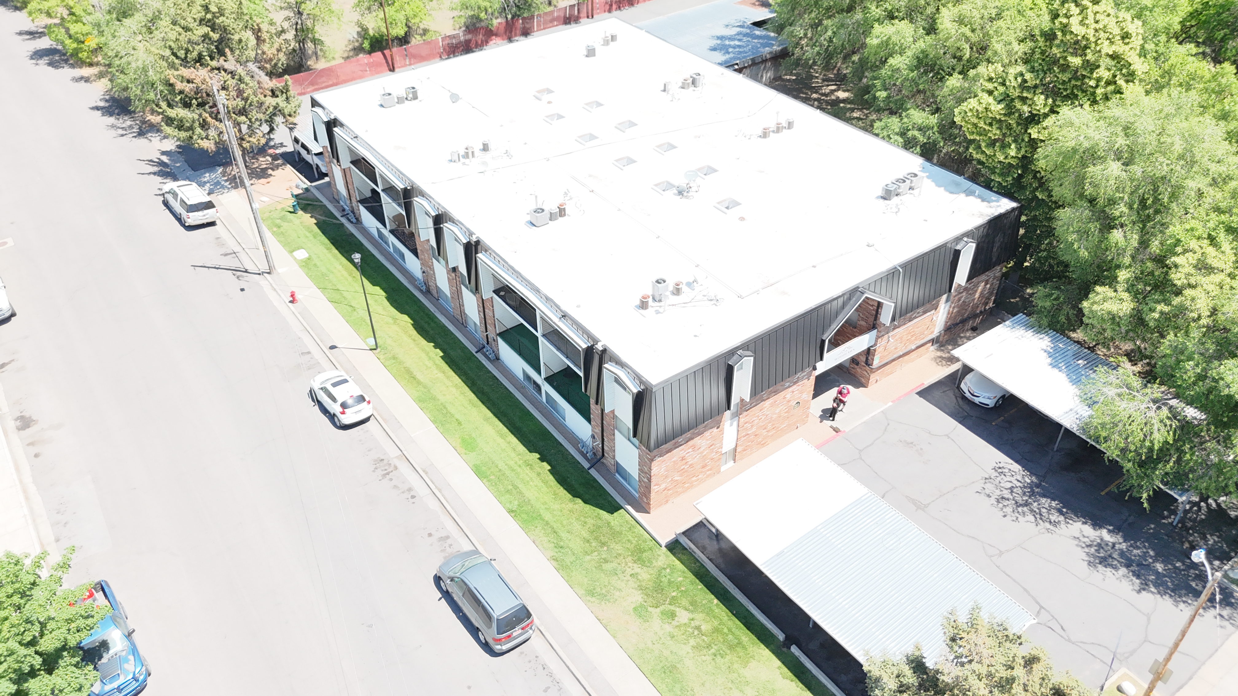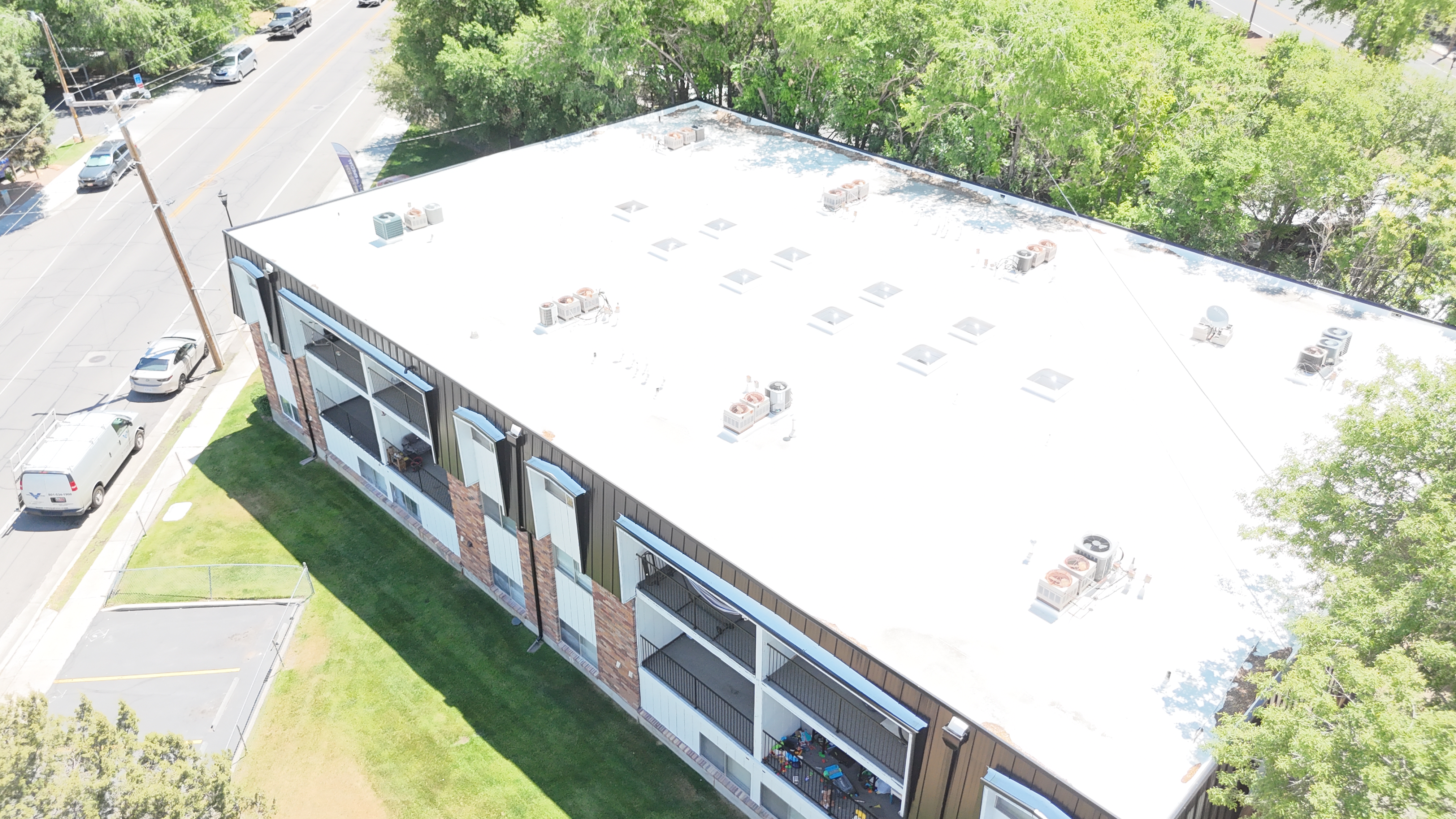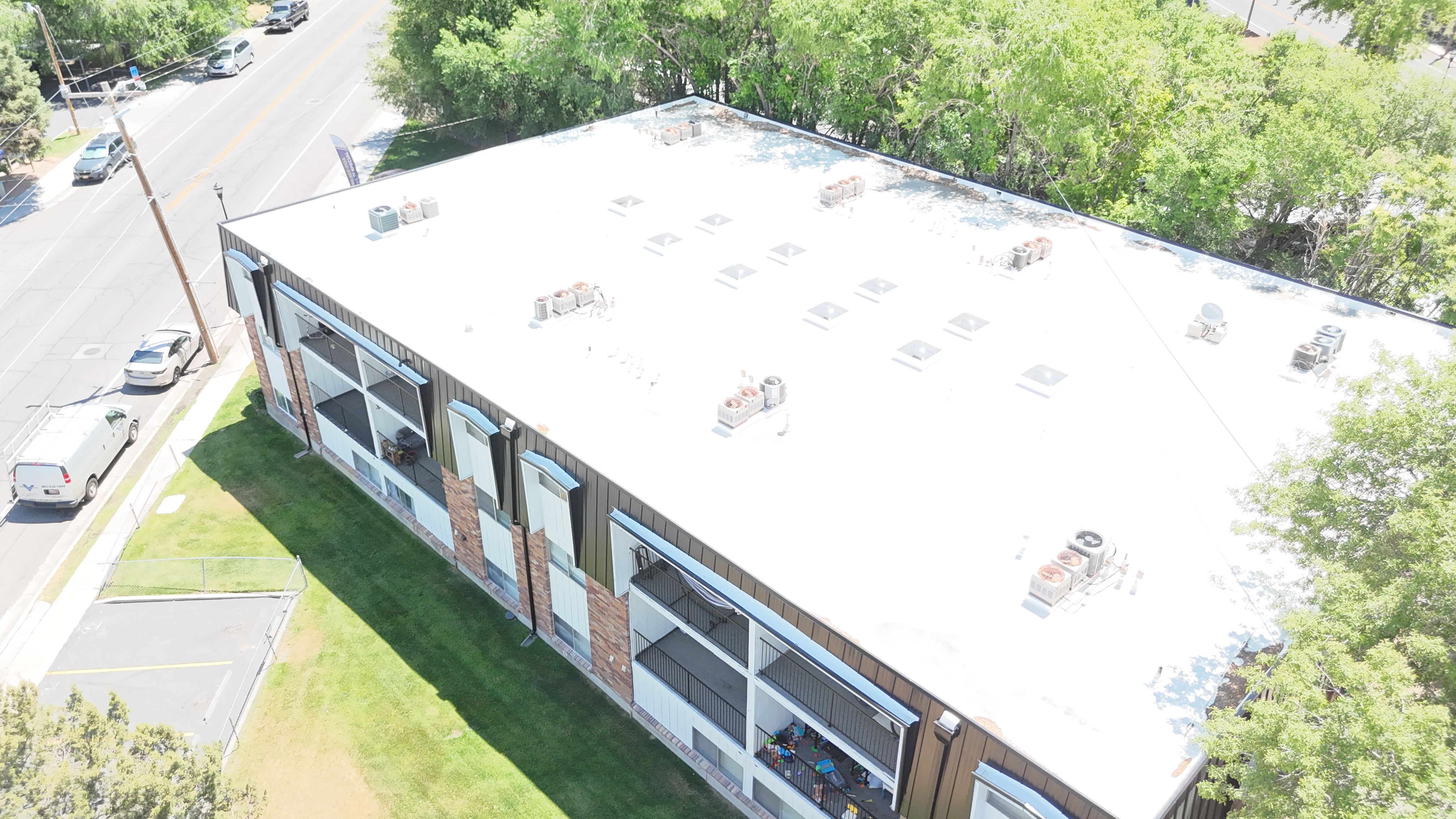 Approx. 14813 sqft installation. Apartment Building. Originally built in 1977. Style: Shingles Type: Versico TPO system and Metal panels for the Mansard Color: Bronze Extra Features: Comments: "We were able to remove all the old roofing for these apartments buildings had to fix a lot of dangerously damaged wood due to prolonged leaks. Installing new membrane and metal for the mansard."1 |